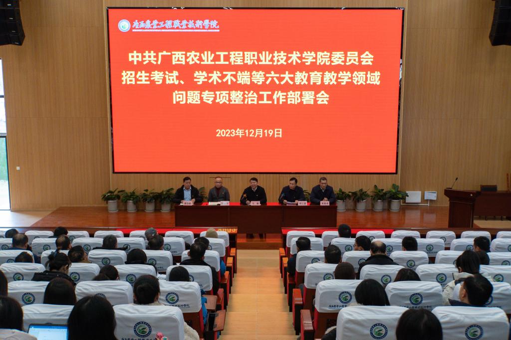马敏指出,开展此次招生考试、学术不端等六大教育教学领域问题专项整治工作,是深入贯彻落实党的二十大精神、习近平总书记对广西“五个更大”重要要求、视察广西“4·27”重要讲话精神和对职业教育工作的重要指示精神的具体实践,是创建清廉学校、推动学校高质量发展的重点任务,要结合职业教育工作实际,以“为民办实事”为出发点,通过有力举措和过硬作风,把教育教学领域突出问题整治到位。