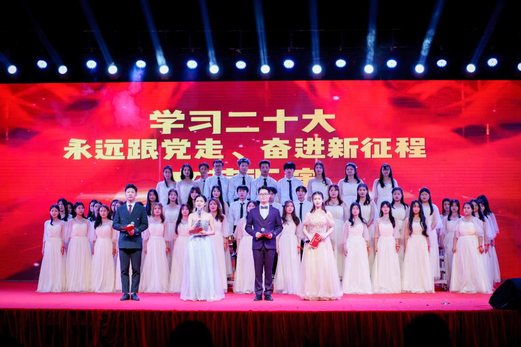 为深入学习宣传贯彻党的二十大精神,积极营造健康向上的校园文化氛围,培养德、智、体、美、劳全面发展的时代新人,3月16日晚,学校在运动场主席台举办“学习党的二十大 永远跟党走 奋进新征程”文艺晚会。