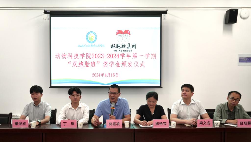 4月16日,PP电子动物科技学院与双胞胎集团共同举行2023-2024学年“双胞胎班”企业奖学金颁发仪式。学校副校长莫嘉凌,双胞胎集团两广招聘经理丁康,动物科技学院负责人、教师代表,“双胞胎班”全体学生出席本次活...