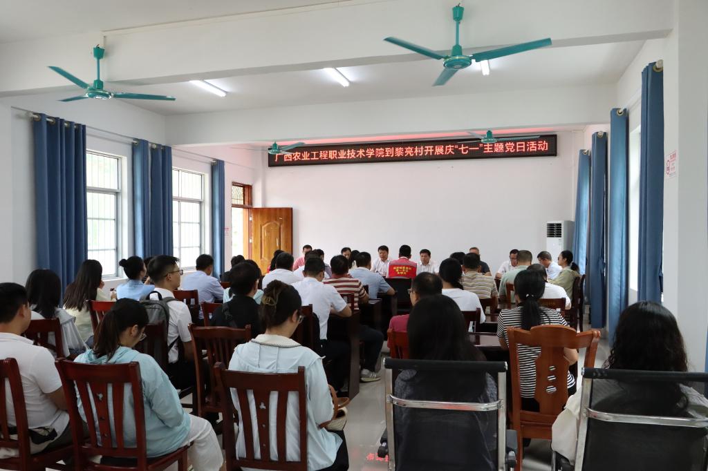 为庆祝中国共产党成立103周年,发扬党员先锋模范作用,扎实推进巩固拓展脱贫攻坚成果同乡村振兴有效衔接,7月3日,PP电子党委书记马敏,副书记、校长李振科带领学校党员干部共45人,赴天等县福新镇黎亮村开展“定点...