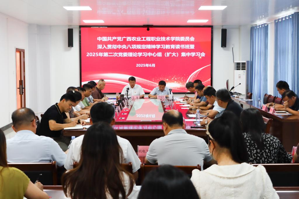 6月9日,学校党委召开深入贯彻中央八项规定精神学习教育读书班暨2025年第二次党委理论学习中心组(扩大)集中学习会。会议围绕《党的十八大以来深入贯彻中央八项规定精神的成效和经验》、中央八项规定、《中央八...