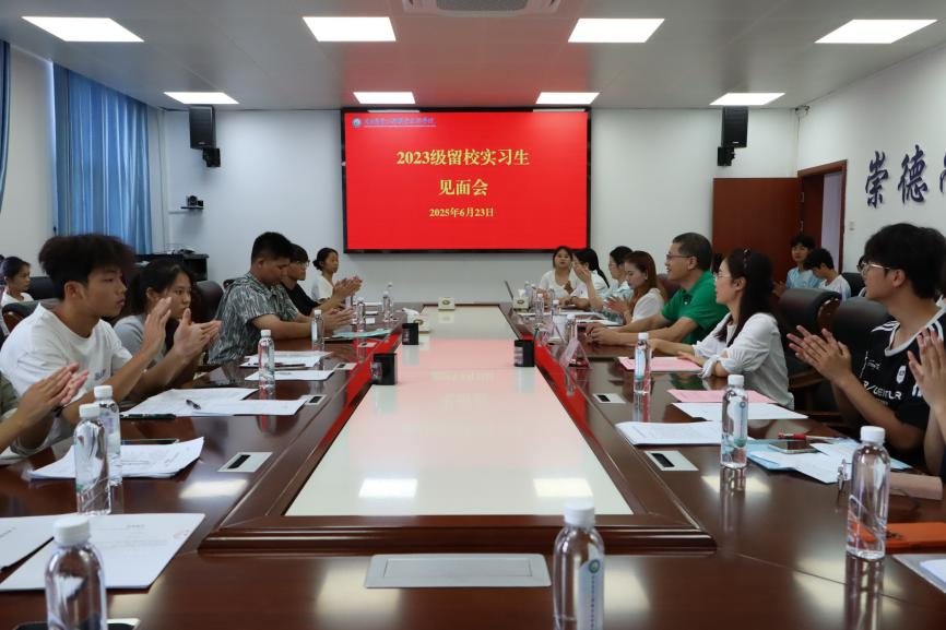 6月23日,PP电子举行2023级留校实习生见面会。学校副校长莫嘉凌出席会议,学工处、教研处相关人员及23级留校实习生参加会议