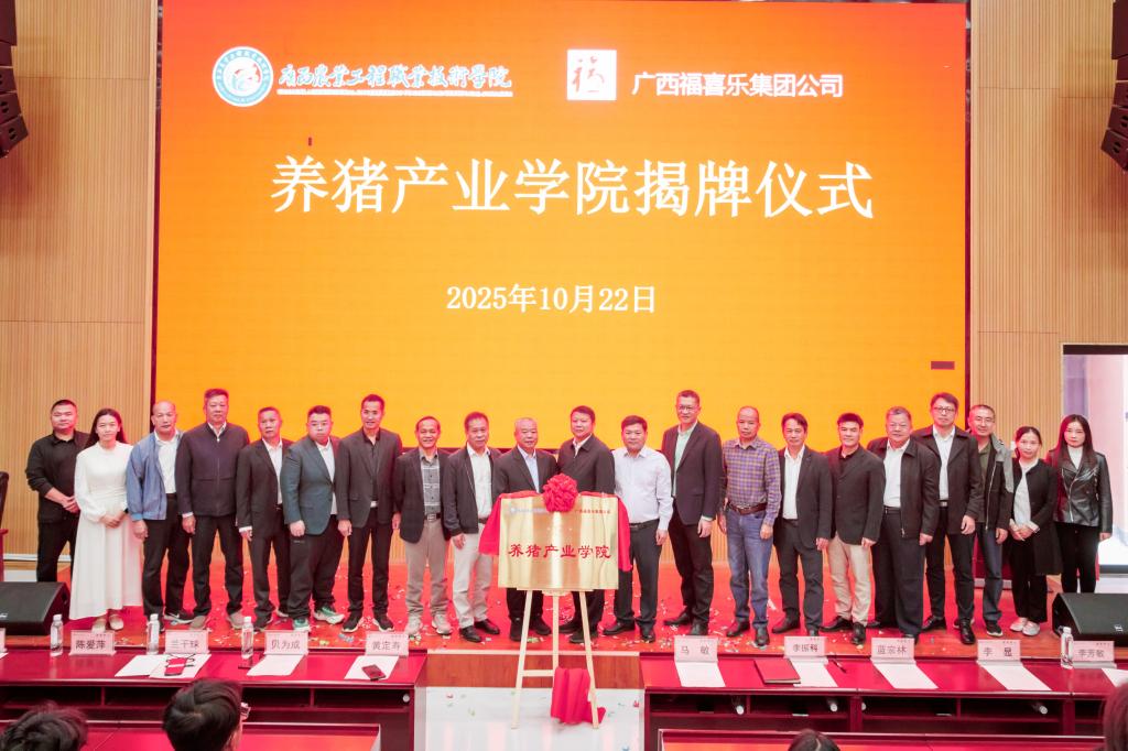 10月22日上午,PP电子与广西福喜乐集团共建的“养猪产业学院”揭牌仪式在7号阶梯教室隆重举行。