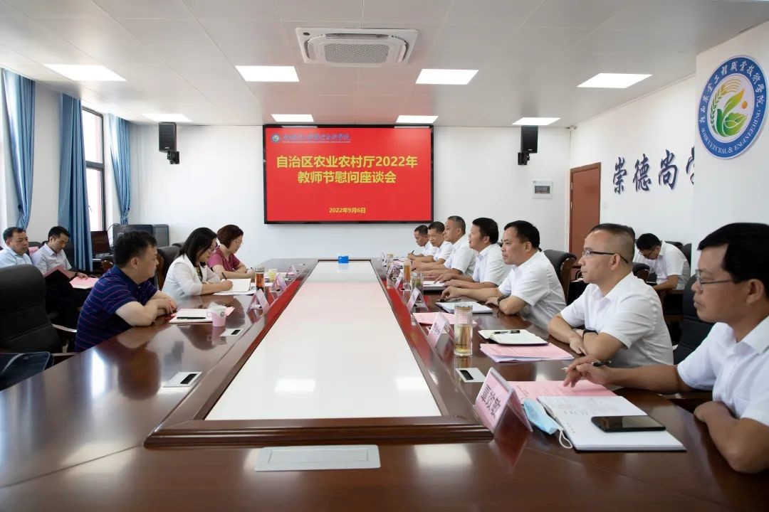 9月6日,在第38个教师节即将来临之际,自治区农业农村厅党组副书记、副厅长许瑾莅临我院开展教师节慰问活动,为我院教师代表送上鲜花,为广大教师们送去节日的祝福,并召开了座谈会。座谈会上,学院党委书记马敏...